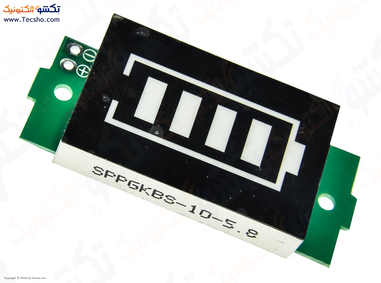 این ماژول مجهز به یک نمایشگر بارگرافی 5 مرحلهای است که هر نشانگر، محدوده مشخصی از درصد شارژ باتری را نمایش میدهد. در صورتی که میزان ولتاژ باتری به کمتر از 25 درصد ظرفیت برسد، نشانگر کادر خاموش شده و وضعیت کاهش شارژ را هشدار میدهد.