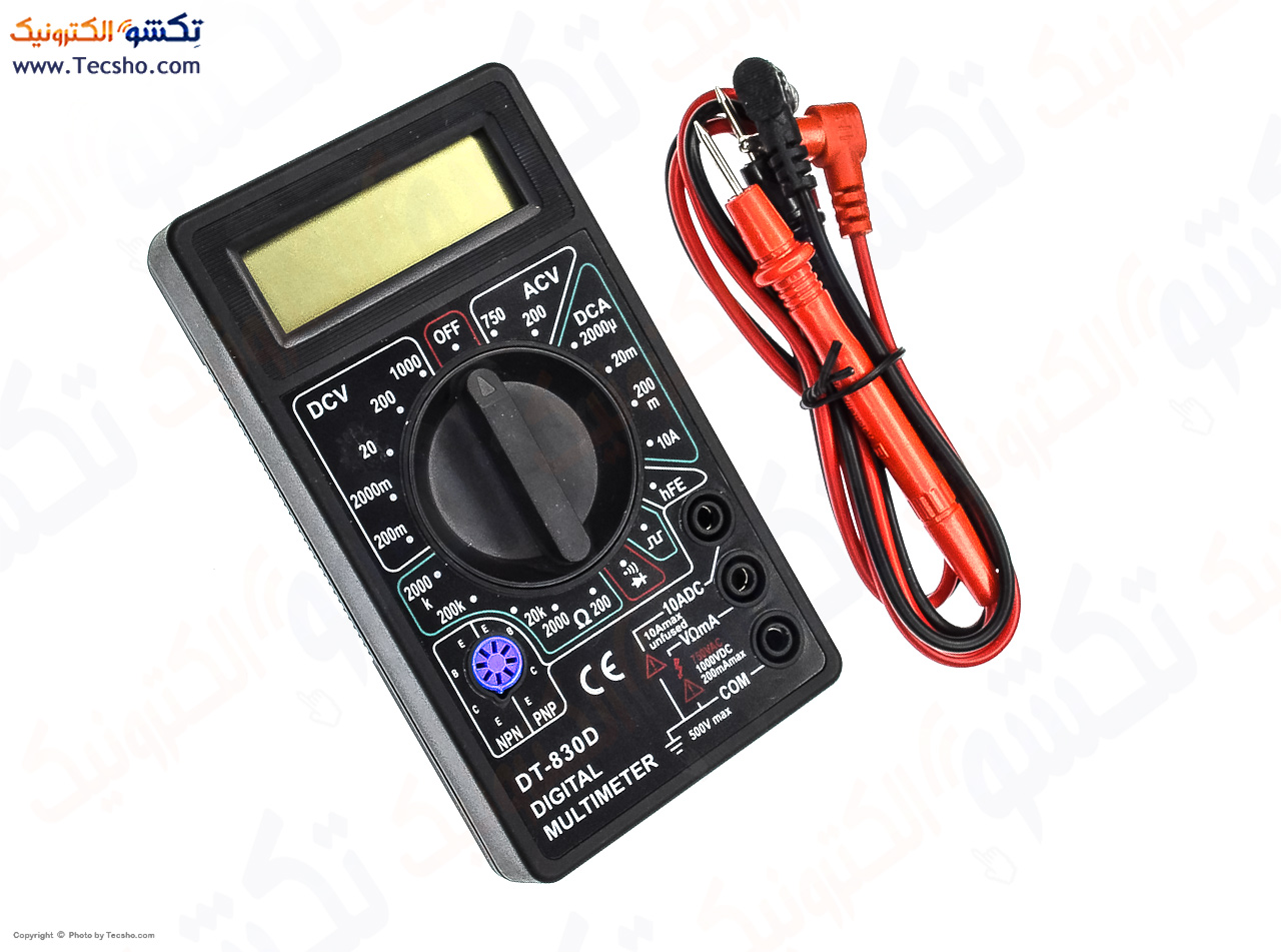 مولتی متر دیجیتال تی اس آی مدل DT830 مناسب برای اندازه گیری پارامتر های الکتریکی و مناسب برای دانش آموزان و دانشجویان رشته الکترونیک و تاسیسات می باشد این دستگاه قابلیت اندازه گیری میزان میکرو آمپر تا 10 آمپر ، اندازه گیری مقاومت ، تست اتصال کوتاه ، سوکت جدابرای تست ترانزیستور می باشد.